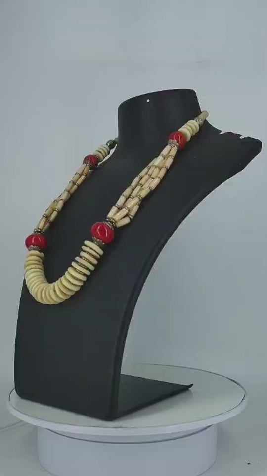 Layered Beige And Red Beaded Necklace