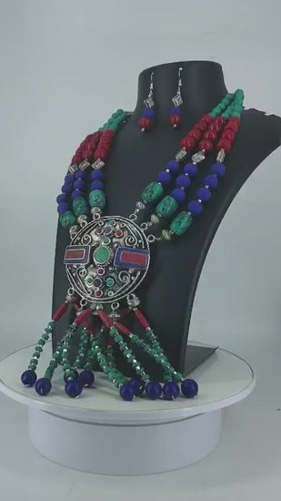 Vintage Gorgeous Old Pure Tibeten Design Silver Unique Necklace Set