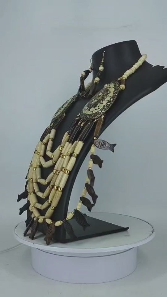Beads Fish Motif Tibeti Long Africano Tribal Necklace