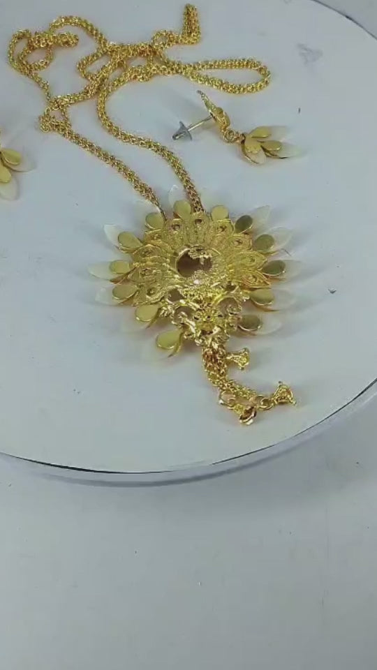 Gold Plated Peacock Motif Shell Tie Chain Set