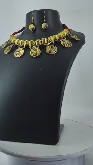 Handcrafted Golden Ball With Round Charm Necklace Set