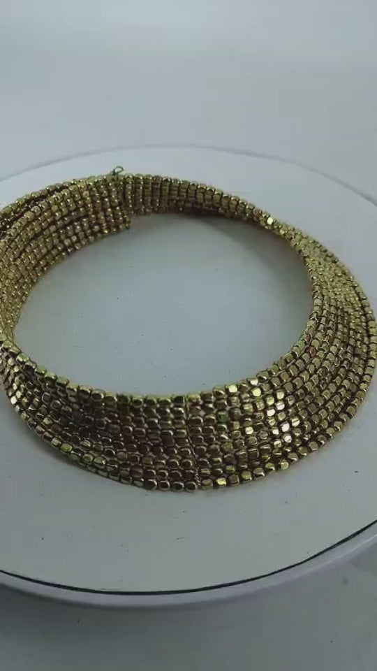 The Hansuli Necklace is expertly handcrafted to showcase exquisite craftsmanship and intricate details. Made with a durable and luxurious materials, this necklace is designed to elevate any outfit and make a statement of timeless elegance. Its unique and eye-catching design will surely make you stand out in any crowd.