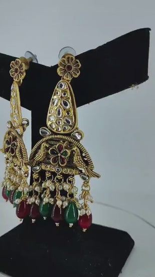Traditional kundan temple bell designer multicolour Bead Drops golden earring