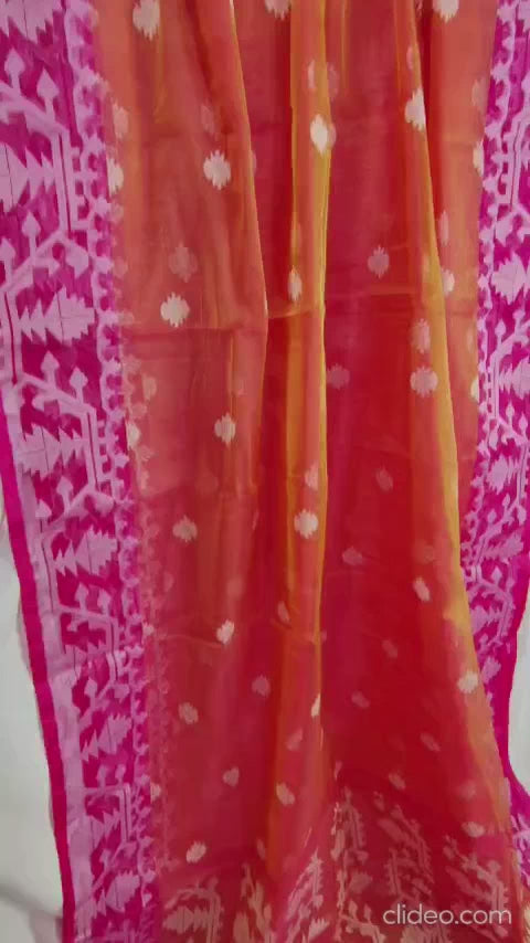 Elevate your ethnic wardrobe with the Dual Tone Maslin Jamdani Saree, expertly crafted to blend traditional artistry with contemporary elegance. This saree features a fine maslin weave combined with intricate Jamdani motifs, offering a lightweight yet richly textured fabric. The dual-tone design enhances its visual appeal, making it suitable for both formal occasions and festive celebrations. Experience the perfect balance of comfort and sophistication with this timeless piece.