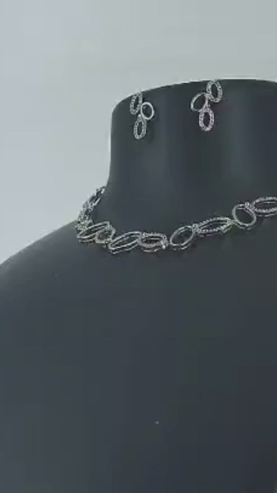 Ad Silvery Ovel Shaped Stone Fittied Necklace Set