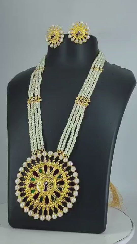 Moti Gold Plated Peacock Pasha Pendent Necklace