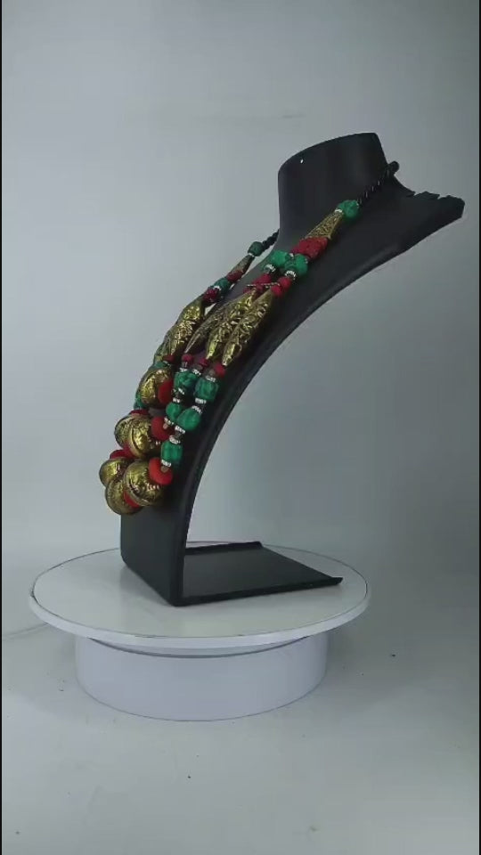 Elevate your style with this sophisticated Multicolor Glass Beaded And Turquoise Beaded Lyr Necklace. Featuring a harmonious blend of vibrant glass beads and striking turquoise elements arranged in a lyrical pattern, this statement piece adds dimension and color to any ensemble. Meticulously crafted for durability and visual impact, it's perfect for both special occasions and everyday elegance.